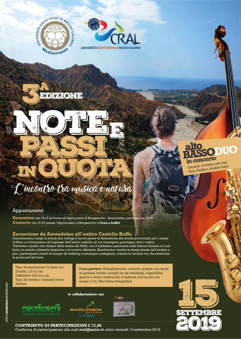 Il 15 settembre si rinnova l’incontro tra musica e natura, con la terza edizione di Note e passi in Quota. Felici di collaborare all’iniziativa organizzata dal CRAL Università Mediterranea. Foto e informazioni sulla nostra pagina Facebook